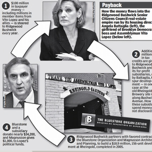 2. Assemblyman Vito Lopez’s campaign treasurer and longtime director of his Ridgewood-Bushwick social services empire has been told by the Bloomberg administration to leave by Jan. 15 or risk the loss of $69 million in contracts for the group. Vito’s golden girl gets booted by city(NYP) The longtime director of the Ridgewood-Bushwick social-services empire, one of the largest and most powerful such agencies in New York, has been handed her walking papers by the city, The Post has learned. Christiana Fisher’s departure would be a blow to Lopez. She’s been with him since Ridgewood-Bushwick was formed nearly 40 years ago and now serves as his campaign treasurer